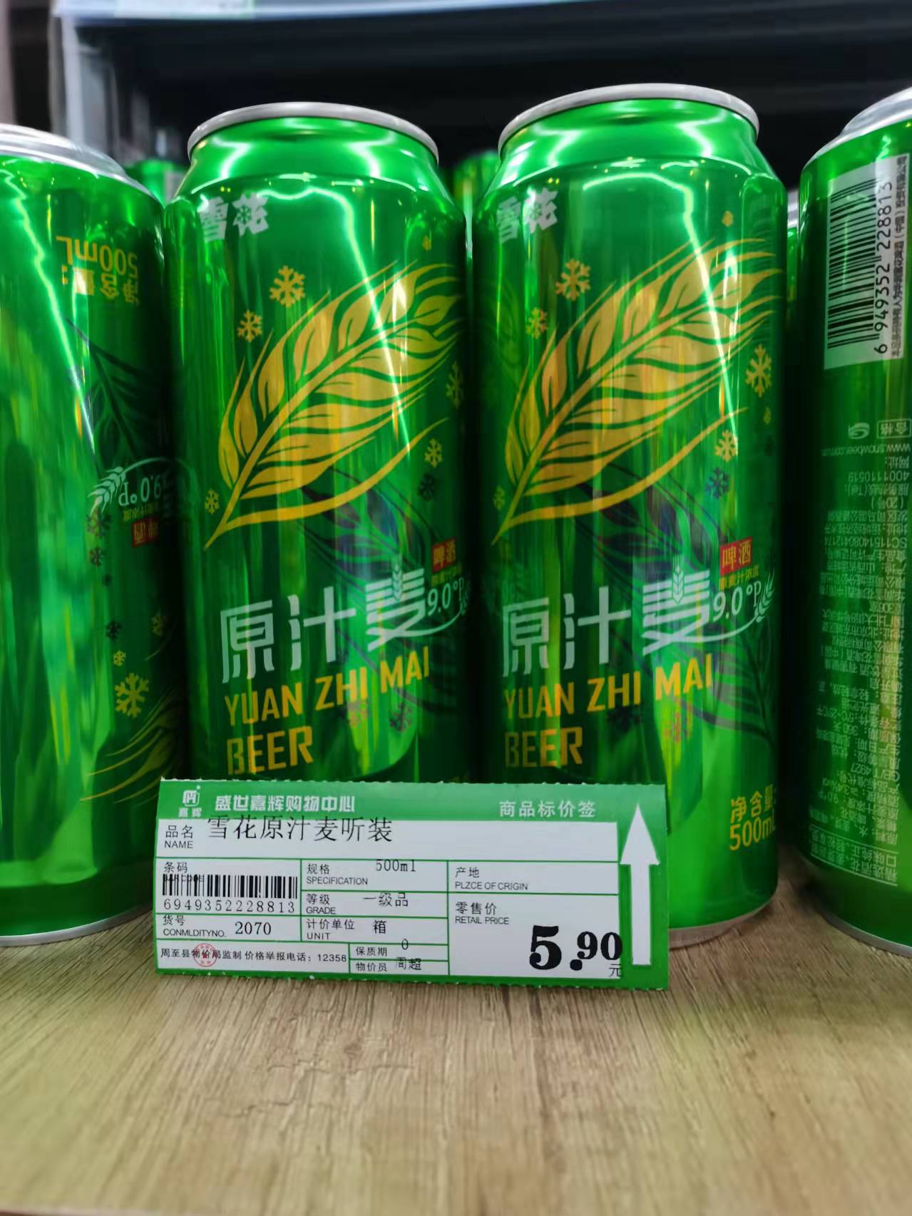雪花原汁麦听装5.9元/500